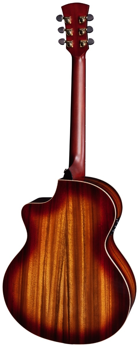 Faith Blood Moon series are an exciting departure from traditional woods that are usually used. Featuring highly figured 'AAA' grade Solid Indonesian Trembesi on top, back and sides with a gloss finish, this guitar gives a harmonically powerful tone as striking to hear as to observe. Faith Blood Moon guitars are bound with Flamed Maple and feature Macassan Ebony fingerboards, headplates, heelplates, bridges and bridge pins. This Electro model feature the Fishman INK3 preamp system. All Blood Moon series Faith Guitars are complete with a Faith Hardcase. Visit www.faithguitars.com for more info