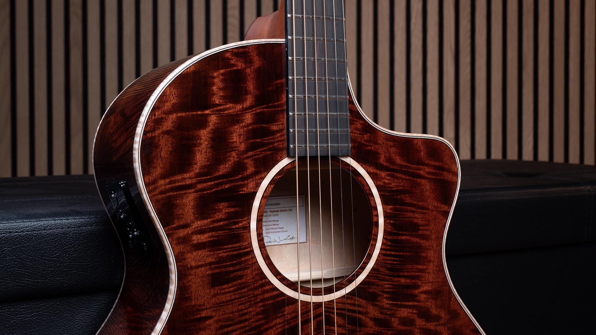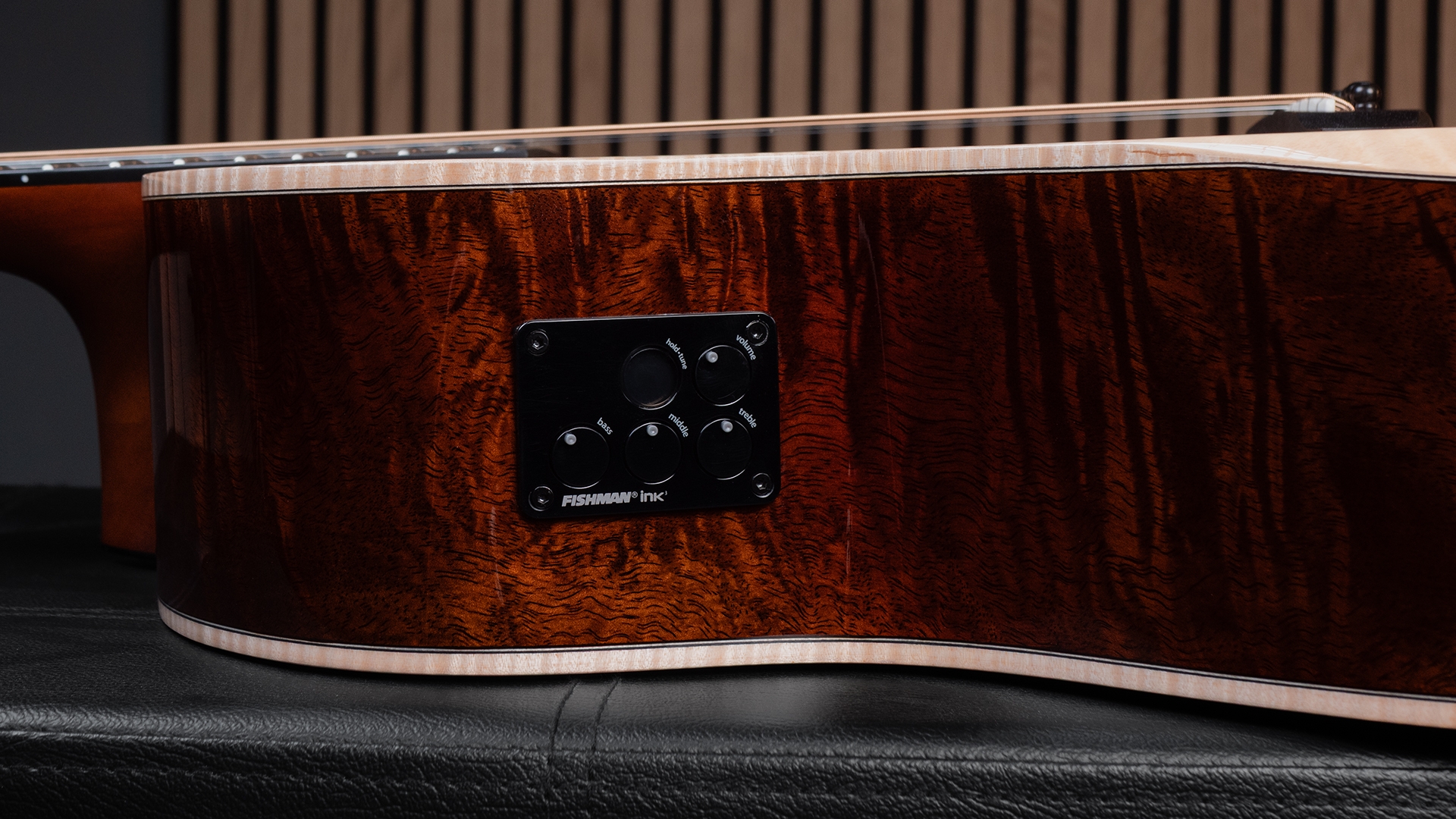 New for 2026, a beautiful, Figured Maple ergonomic forearm contour has been introduced to the guitar body to maximise comfort and playability. This Maple arm contour is matched by the stunning figured maple soundhole rosette and binding that covers the outer edges of each instrument.